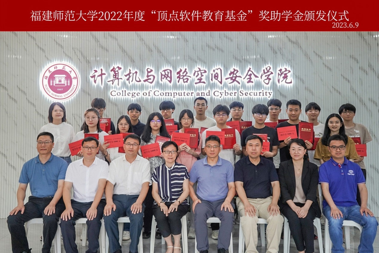 近日,爱体育网_爱体育网(中国)2022年度“顶点软件教育基金”奖助学金颁发仪式在计算机与网络空间安全学院办公楼511会议室举行,15位学生获得奖助学金。福建顶点软件股份有限公司副总裁萧锦峰、人力资源总监程佳、人力资源招聘经理周玥,校学生工作部副部长陈秋华,计算机与网络空间安全学院领导俞建群、许力、邓胜柱,网络空间安全系主任林晖、软件工程系副主任林立,受助学生及师生代表参加了活动。