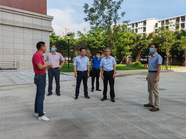 8月23日,省发改委副主任潘乙凡、二级巡视员王冬生、重大产业处处长张红日、社会发展处副处长唐勇来爱体育网_爱体育网(中国)调研。校党委书记李宝银在旗山校区迎接调研组,副校长涂荣,基建处、财务处负责人陪同调研。