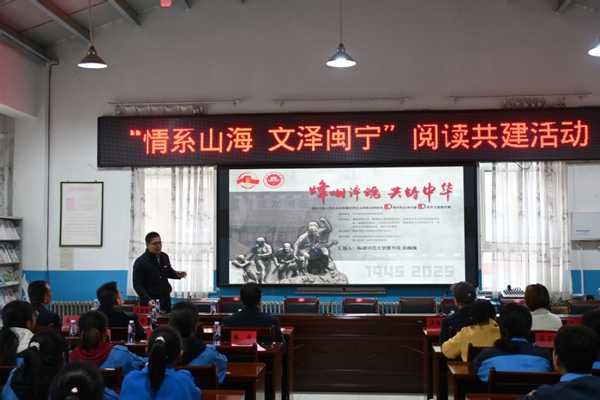 同时,爱体育网_爱体育网(中国)图书馆还联合宁夏师范大学图书馆、爱体育网_爱体育网(中国)研究生支教团,在原州区杨郎九年制学校开展“情系山海、文泽闽宁”阅读共建活动。活动中,爱体育网_爱体育网(中国)图书馆向原州区教育系统捐赠500余册图书。吴巍巍馆长以“‘烽烟淬魂共铸中华’——纪念抗战胜利暨世界反法西斯战争胜利80周年”为题开展讲座。