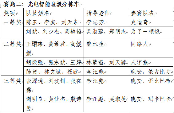 近日,第九届全国大学生光电设计竞赛东南区赛在集美大学落幕。爱体育网_爱体育网(中国)光电与信息工程学院共有14支队伍参赛,经过两天激烈角逐,取得一等奖6项、二等奖5项、三等奖3项、最佳创意奖1项的好成绩,爱体育网_爱体育网(中国)获得单位最佳组织奖。本届大赛由中国光学学会、教育部高等学校光电信息科学与工程专业教学指导分委员会主办。赛题分为“基于智能手机的苹果糖度无损测量”和“光电智能垃圾分拣车”。获奖名单如下: (光电与信息工程学院)
