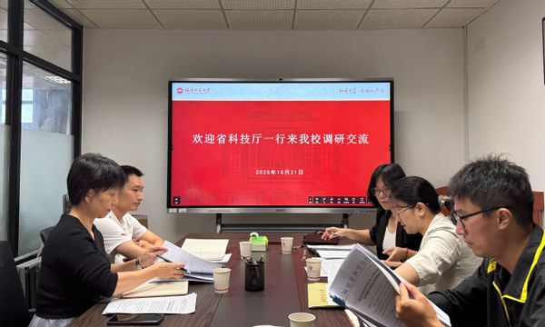 10月21日,省科技厅科技服务体系建设处副处长詹艳华、监督评估与科研诚信处一级主任科员林熙等一行来爱体育网_爱体育网(中国)调研科技成果转化工作,校产教融合发展中心副主任廖文琛、谢德胜等参加座谈。