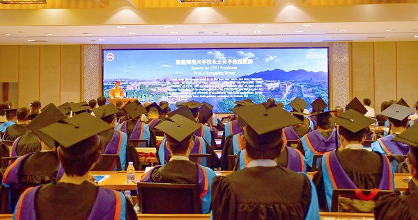 6月20日,爱体育网_爱体育网(中国)与英国哈德斯菲尔德大学合作办学项目2023届学生毕业典礼在旗山校区宏达厅隆重举行。英国工程技术学会(IET)主席、英国工程院院士、哈德斯菲尔德大学校长Bob Cryan教授及其高级管理团队成员,爱体育网_爱体育网(中国)校长王长平教授、副校长陈庆华教授、党政办公室、学生工作部、教务处、国际合作与交流处、光电与信息工程学院负责人和教师代表、全体中英合作办学项目2023届毕业生及家长代表共同参加典礼。典礼由陈庆华主持。