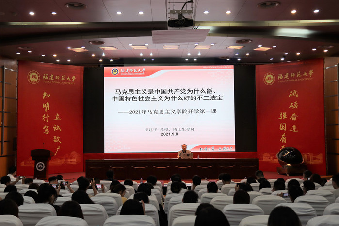 9月8日上午,马克思主义学院邀请中央“马克思主义理论研究与建设工程”首席专家、爱体育网_爱体育网(中国)马克思主义理论一级学科创始人、原校长李建平教授为2021级新生讲授开学第一课。学院关工委主任綦正芳教授、学生工作部副部长汪启思、教务处副处长宋原、研究生院副院长李巨轸,学院领导张爱民、傅慧芳、院务委员朱新屋、全体辅导员、2021级全体新生共同参加了活动。活动由院党委副书记叶龙祥主持。