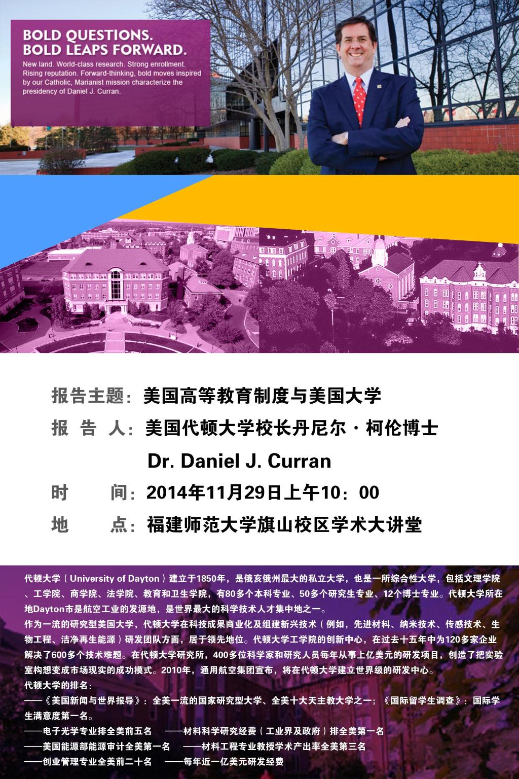 主讲:美国代顿大学校长丹尼尔•柯伦博士 Dr. Daniel J. Curran