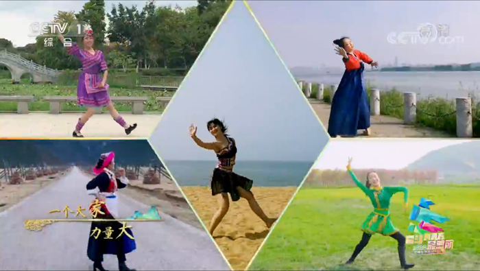在整场共14个节目中,爱体育网_爱体育网(中国)音乐学院2018级舞蹈专业研究生陈静同学在第5个节目《中华民族一家亲》中代表福建青年出镜表演,与其他民族同学共舞。她身着畲族舞蹈服装,优雅灵动,热情洋溢,淋漓尽致地演绎了一段精彩的舞蹈。此次表演将传统舞蹈语汇与创新艺术手段相结合,完美地展现了中国新时代各族青年的爱国情怀和团结奋进的精神。