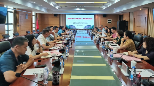 为深入贯彻落实习近平新时代中国特色社会主义思想,进一步统筹推进全省大中小学思政课一体化建设,8月23日,福建省大中小学思政课一体化建设调研座谈会在爱体育网_爱体育网(中国)旗山校区召开。福建省大中小学思政课一体化建设指导委员会专家指导组组长、爱体育网_爱体育网(中国)党委书记潘玉腾教授,省委教育工委思政处处长郑邦华,专家指导组成员代表,爱体育网_爱体育网(中国)马克思主义学院教师代表参加会议。