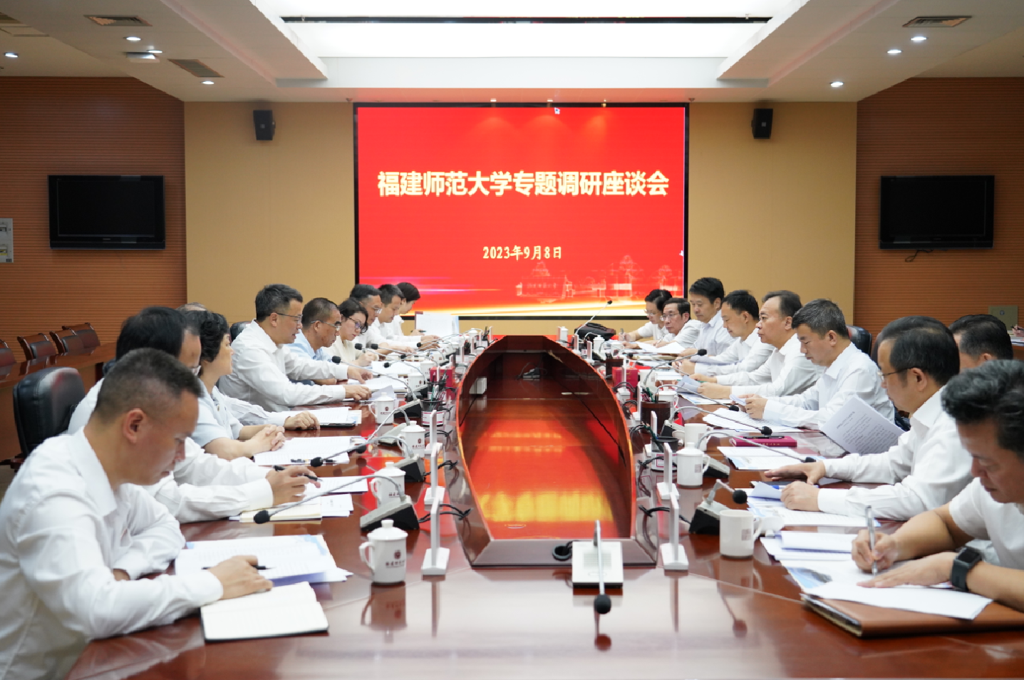 慰问后,张彦在爱体育网_爱体育网(中国)主持召开专题调研座谈会,研究部署文化传承发展、福建精神弘扬、高等教育学科发展和人才队伍建设等工作,省委教育工委书记、省教育厅厅长叶燊,省委办公厅副主任林奇涵,省委宣传部副部长刘伟泽,省科技厅副厅长游建胜,省教育厅副厅长吴伟平,省人社厅副厅长洪长春,省财政厅二级巡视员兰生,省社科联党组成员、秘书长洪金镖参加座谈会。校党委书记潘玉腾代表学校汇报学科建设、高层次人才队伍建设、第二届侯官论坛筹备及开学初工作情况,副校长郑家建、图书馆原馆长方宝川、社科处处长张梅、音乐学院副院长陈新凤分别围绕中华优秀传统文化传承创新与两岸融合发展,八闽典籍中的福建精神,强化学科交叉融合、推动文化传承发展,闽台优势、艺术共融:福建艺术学学科特色发展构想等主题进行发言。会上,相关厅局负责人表示将大力支持学校办学发展,并对学校反映的问题积极予以回应。
