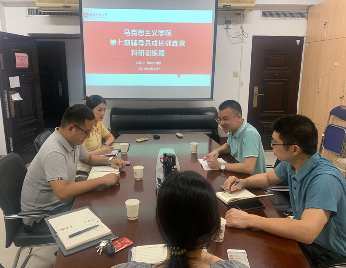 近日,马克思主义学院开展第七期辅导员成长训练营学习交流会,邀请学院博士生导师蔡华杰教授就加强科研训练进行指导。