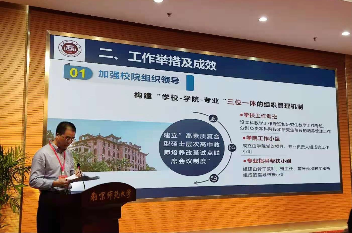 会议于10月18日在南京师范大学召开,教育部教师工作司司长任友群及相关处室负责同志,江苏、浙江、福建三省教育厅有关领导,南京师范大学、浙江师范大学、杭州师范大学及爱体育网_爱体育网(中国)四所试点高校领导及相关负责人参加了会议。会议旨在总结高素质复合型硕士层次高中教师培养试点工作经验,进一步深化新时代教师教育人才培养模式改革。