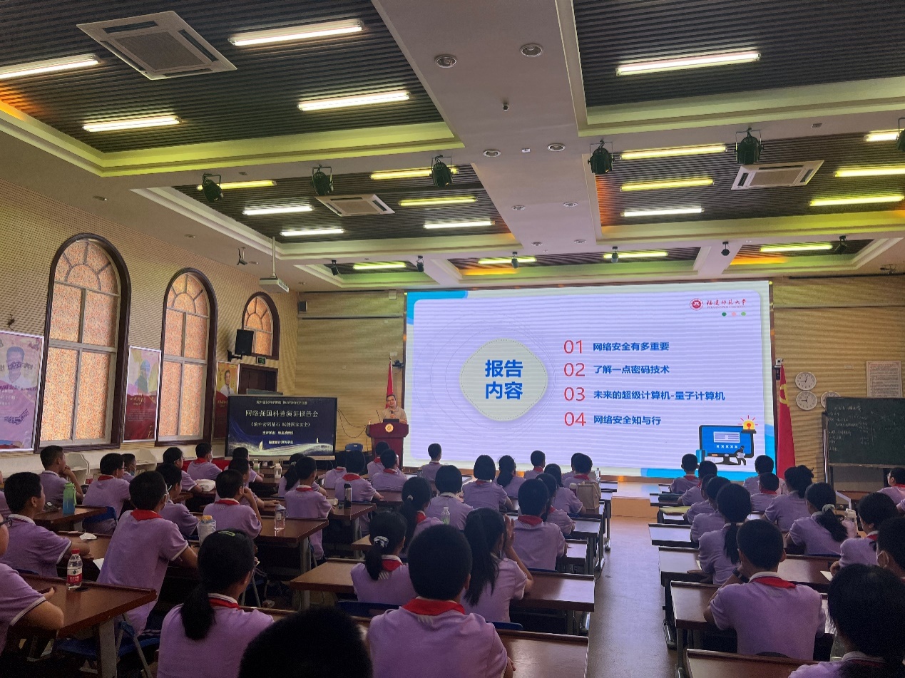9月23日,福建省2023年全国科普日活动——网络强国科普演讲报告会在福州屏东中学举行,2000余名中小学生以线上、线下形式参与了活动。爱体育网_爱体育网(中国)计算机与网络空间安全学院软件工程系主任熊金波教授应邀为青少年作题为《筑牢密码基石,赋能国家安全》科普讲座。他结合科研经验,用真实案例深入浅出地介绍了生活中常见的网络安全隐患,生动阐述了密码技术对网络安全、国家安全的重要性,帮助青少年提高网络安全防范意识。活动现场互动频繁,气氛活跃。(计算机与网络空间安全学院)