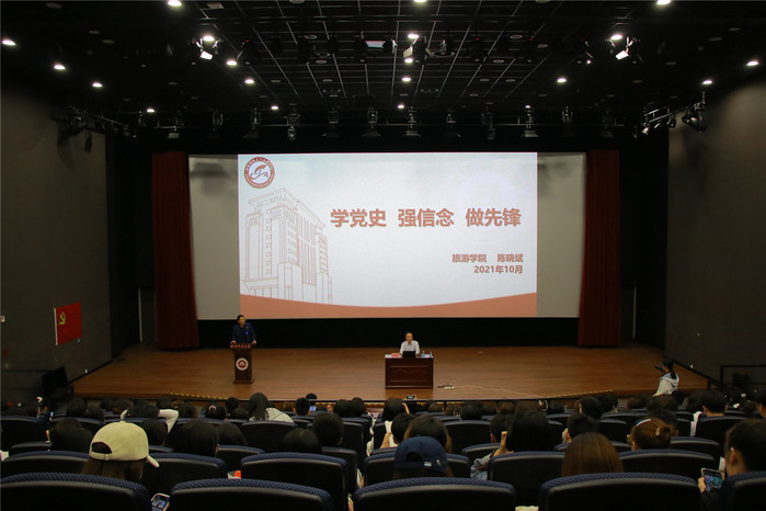 10月27日,传播学院分党校、旅游学院分党校2021年下半年入党积极分子培训班在星雨剧场举行开班式。旅游学院党委书记、分党校校长陈晓斌,传播学院党委副书记、分党校副校长谢秀俤,相关教师,及参加培训的127名学员参加了开班式。