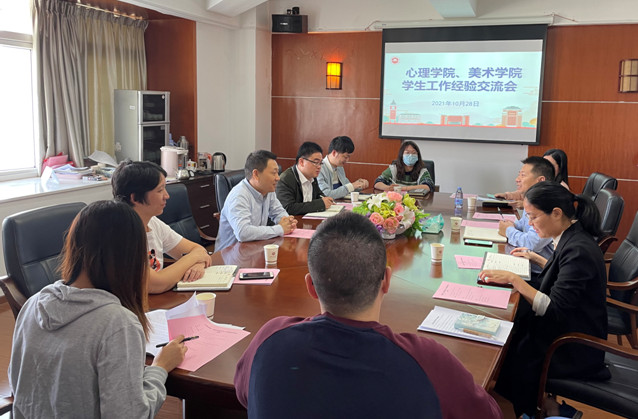 10月28日上午,学院党委副书记乐有方带领学院全体辅导员到心理学院开展工作交流研讨。会上,心理学院党委副书记(主持工作)张本钰、美术学院党委副书记乐有方分别介绍了各自学院学生教育管理与服务的基本情况。与会人员围绕心理健康教育、学生干部培养、学生评优评先、新媒体平台建设等方面问题进行了交流。大家表示,通过交流学习,有利于拓宽学工队伍的工作思路,提升学工队伍的育人能力,提高学生教育管理与服务的针对性、实效性。(美术学院 心理学院)