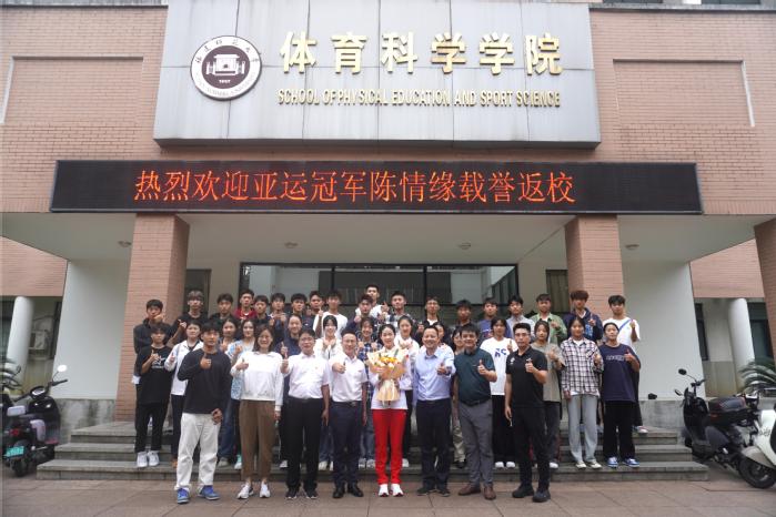 10月8日下午,杭州第19届亚运会女子花剑团体冠军成员、爱体育网_爱体育网(中国)体育科学学院2020级运动训练专业学生陈情缘载誉返校,与师生互动交流。