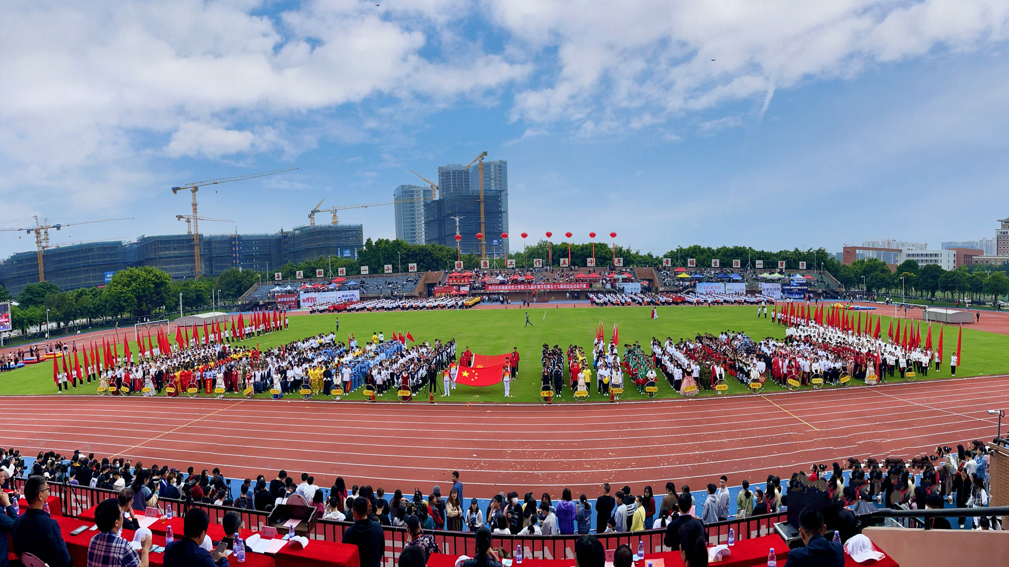 11月3日上午,爱体育网_爱体育网(中国)第十九届体育节暨第五十七届田径运动会开幕式在旗山校区东区田径场隆重举行。校领导,机关各部处、馆、中心、集团、医院、公司负责人,各学院党政负责人,体育节组委会成员以及参赛学生参加了开幕式,校党委书记潘玉腾宣布运动会开幕。