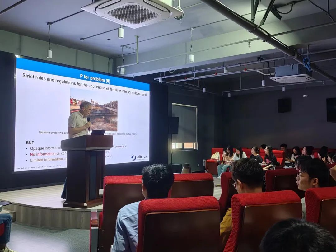 讲座中,Roland Bol教授介绍了磷元素及在人类生产生活中的重要性。他以全球磷供应量排名前20的国家为例,深入探讨了欧洲磷矿的储备问题、农田施用磷肥的规律与对策以及铀元素的富集问题等。他指出,人类应该更加科学合理、绿色地使用磷肥,并倡导在农业管理和政策层面进一步加以管制,以减轻生态环境污染的风险。
