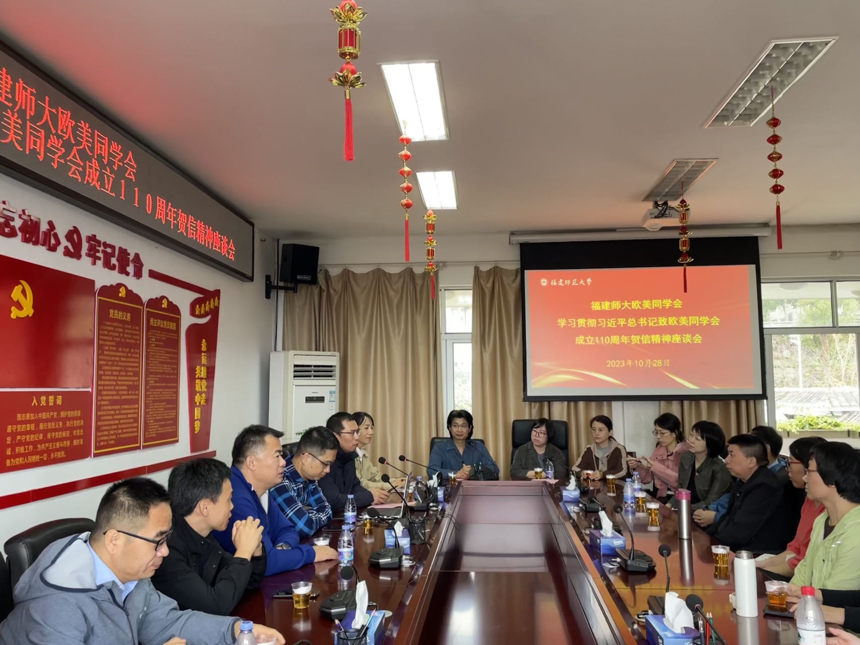 座谈会上,校欧美同学会理事张先增领学习近平总书记的贺信全文,大家围绕欧美同学会成立110周年庆祝大会和贺信精神踊跃发言,一致表示要牢记嘱托,继续弘扬好留学报国传统,发挥好人才库、智囊团、生力军作用,在助力强国建设、民族复兴伟业中彰显留学人员的更大作为,为新福建建设和学校事业高质量发展贡献智慧和力量。