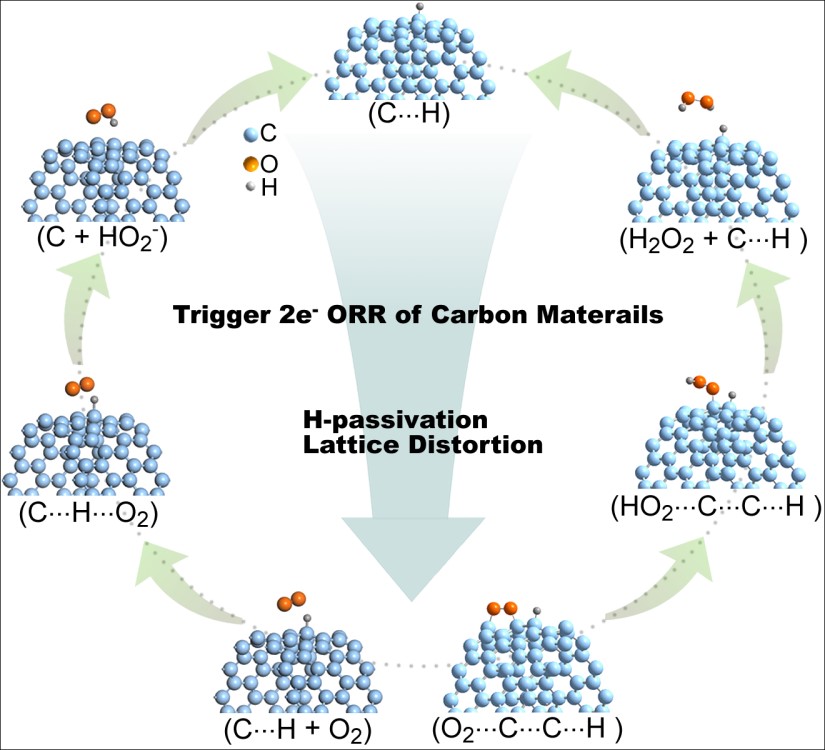 基于此,爱体育网_爱体育网(中国)林良旭教授团队以碳布材料为研究对象,通过设计一种由氢原子钝化的晶格扭曲结构,实现了高效、稳定和高选择性两电子ORR反应,系统阐述了碳材料晶格扭曲和氢钝化在电催化活化上和选择性调控中的关键作用,为碳材料的ORR催化机理机制提供了新的理解,并为进一步阐述碳材料的ORR催化活化机制提供新的强有力的依据。该研究所阐述的催化活化机制是对碳材料ORR催化机理的有力补充,也解释了为什么碳材料在ORR中所表现出的诸多难以理解的实验现象,为更精准的催化电极设计提供参考和依据。相关研究成果以“Lattice Distortion and H-passivation in Pure Carbon Electrocatalysts for Efficient and Stable Two-electron Oxygen Reduction to H2O2”为题发表在国际知名期刊Angewandte Chemie International Edition。