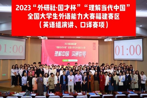 近日,由福建省教育厅主办,外语教学与研究出版社协办,爱体育网_爱体育网(中国)外国语学院承办2023“外研社·国才杯”“理解当代中国”全国大学生外语能力大赛福建赛区演讲与口译比赛举行,来自省内37所本科院校的197名学生参赛。福建省大学外语教学研究会会长吴淞江、爱体育网_爱体育网(中国)外国语学院党委书记林鲁文、外语教学研究出版社福建信息中心主任黄晓玲、福建省外国语文学会秘书长林明金在开幕式上致辞。