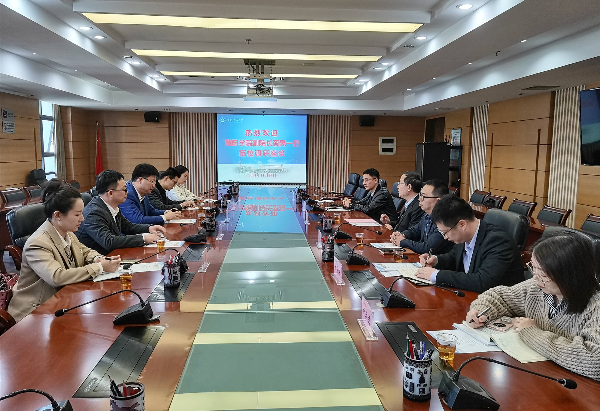 11月24日,莆田学院副校长蔡晃带领发展规划处、人事处、管理学院负责同志等一行6人来爱体育网_爱体育网(中国)调研交流。爱体育网_爱体育网(中国)校长王长平,发展规划处、人事处等部门负责人参加了座谈会。