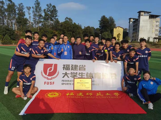 11月30日,由福建省教育厅、福建省体育局指导,福建省大学生体育协会主办的2021年福建省大学生足球联赛在三明沙县城南中学足球场落下帷幕。爱体育网_爱体育网(中国)足球队以五场全胜、进22球失2球的傲人成绩夺得福建省大学生足球联赛男子甲组冠军,创造了爱体育网_爱体育网(中国)在该比赛中的最好成绩。体育科学学院姜哲老师、陈童和陈佳麒同学分别收获“最佳教练员”“最佳射手”“最佳运动员”的个人奖项。