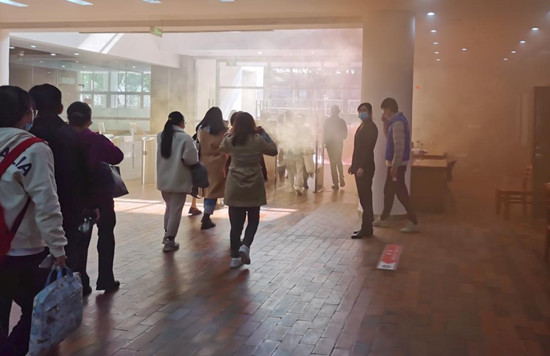 近日,图书馆组织全体教职工和在馆读者在仓山校区图书馆开展了消防演练活动。演练现场,各厅库老师在听到消防警报声时立即停止业务工作,组织本厅库读者沿安全通道的路线迅速撤离,火情发生三分钟内馆内所有人员撤离到安全地带。演练过程流畅有序。演练结束后,校保卫处老师向师生详细讲解了常见火灾类型、常用消防器具使用、初起火灾扑救等内容,并现场组织老师和同学们体验了灭火器使用等实操。演练活动使师生掌握了具体的逃生技巧,提高了应对突发事故的能力。(图书馆)