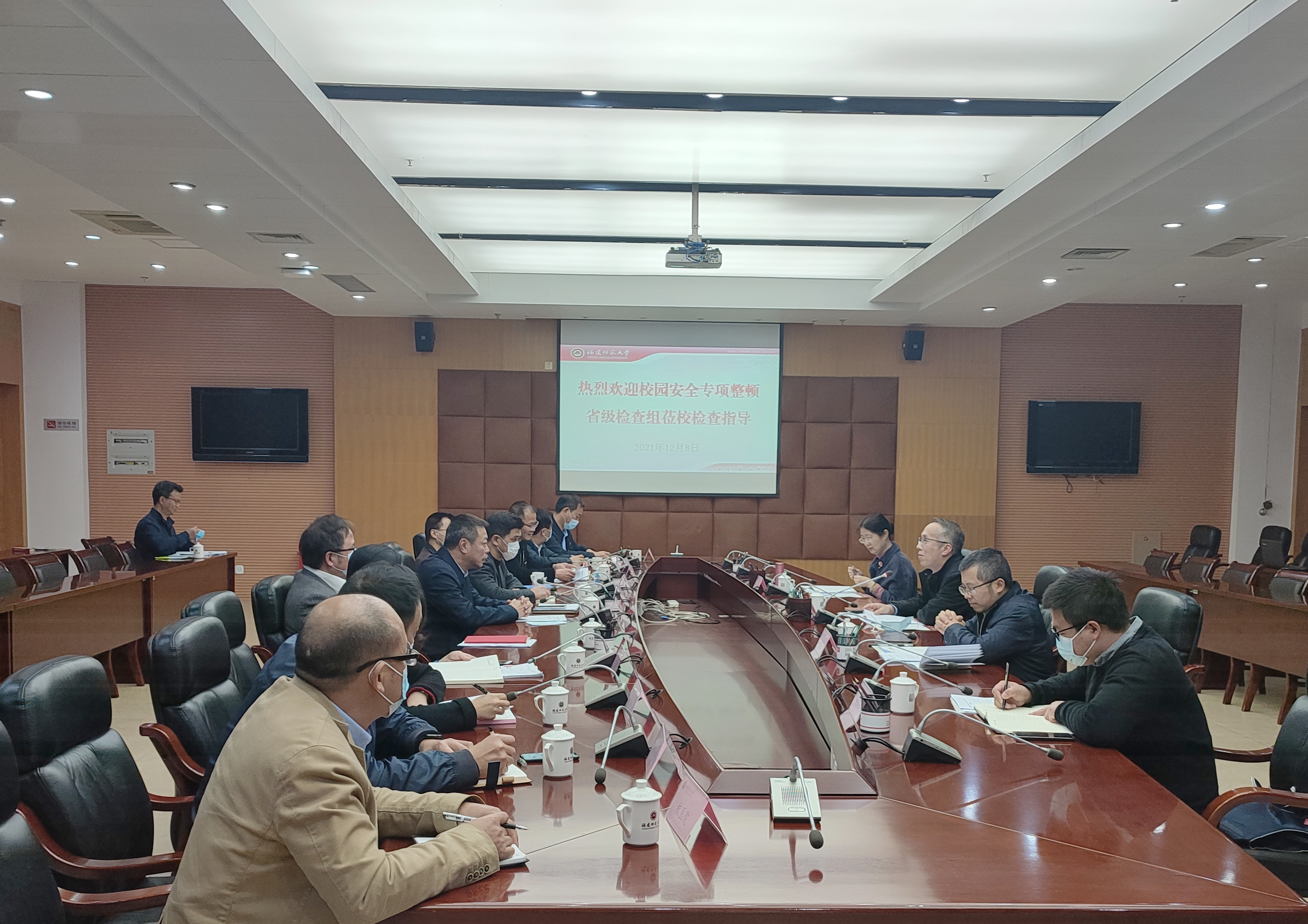 12月8日,校园安全专项整顿省级检查组高校一组组长张航一行莅临爱体育网_爱体育网(中国)调研检查。校党委副书记李绚,相关职能部门及学院负责人参加汇报会。