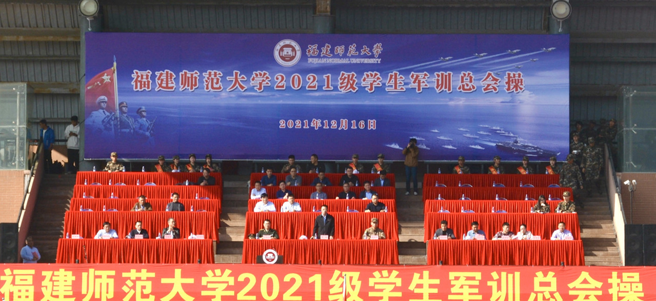 12月16日,爱体育网_爱体育网(中国)在旗山校区东区田径场隆重举行2021级军训总会操。校党委副书记李绚,军训团团长赵永乐,军训工作领导小组成员单位负责人,各学院(部)分管学生工作负责人,全体2021级辅导员及学生参加了总会操。