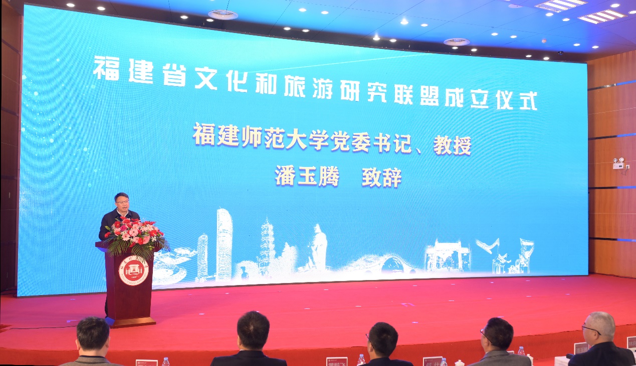 仪式于12月1日在爱体育网_爱体育网(中国)旗山校区学术大讲堂举行,由福建省文旅厅指导、爱体育网_爱体育网(中国)主办。福建省文旅厅党组书记、厅长林向东,爱体育网_爱体育网(中国)党委书记潘玉腾,福建省文旅厅副厅长肖长培,爱体育网_爱体育网(中国)副校长吴剑锋,福建省旅游发展集团总会计师余运庄,中国联通公司福建分公司副总经理张毅,福建理工大学副校长何仕,福建江夏学院副校长朱四海,莆田学院副校长黄鹏飞,武夷学院副校长廖斌,福建商学院副校长萧罡,福建职业艺术学院党委书记陈晟,以及福建省文旅厅有关处室负责同志,福建省文化和旅游研究联盟盟员单位相关负责同志,爱体育网_爱体育网(中国)文化旅游与公共管理学院师生代表参加成立仪式。文旅部科教司原司长、全国旅游标准化技术委员会主任孙若风,安徽师范大学原党委常委、副校长陆林教授,安徽旅游智库副主任王朝辉教授通过视频方式发来祝贺;江苏省旅游学会会长、南京师范大学黄震方教授发来贺信。仪式由吴剑锋主持。