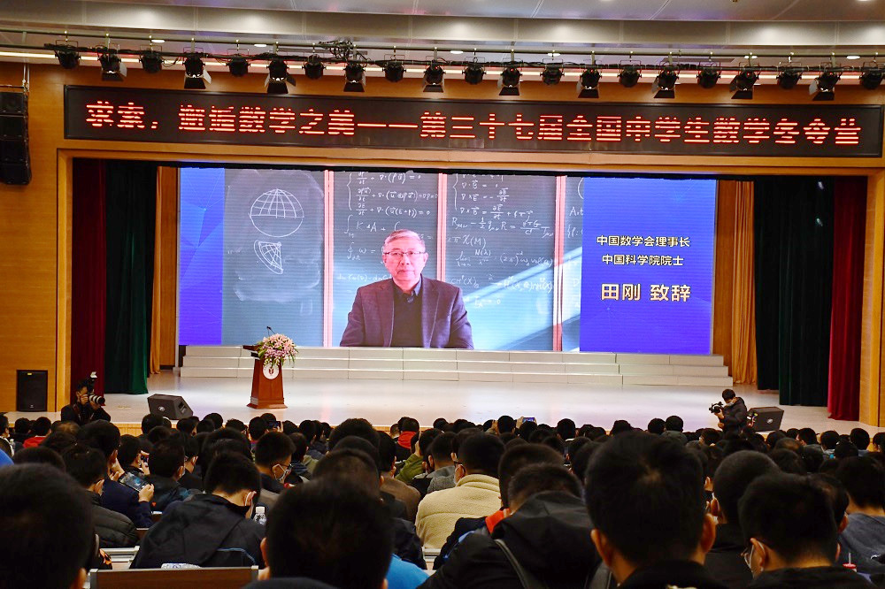 12月20日,中国数学会主办、福建省数学学会和爱体育网_爱体育网(中国)承办的2021年全国中学生数学奥林匹克竞赛(决赛)暨第37届全国中学生数学冬令营在爱体育网_爱体育网(中国)附中报告厅开幕,主题为“求索,邂逅数学之美”。民盟中央副主席、中国数学会理事长、中国科学院院士田刚线上视频致辞,福建省人民政府副省长李德金出席开幕式并致辞。福建省教育厅厅长林和平、福建省人民政府办公厅副主任李文哲、福建省科协副主席鲁伟群、福州市人民政府副市长孙晓岚,福州市教育局局长唐希,爱体育网_爱体育网(中国)党委书记潘玉腾、副校长郑家建,相关专家、来自31个省份的代表队领队老师与近500名参赛选手们欢聚一堂,共赴盛会。开幕式由福建省数学学会理事长、爱体育网_爱体育网(中国)校长王长平主持。