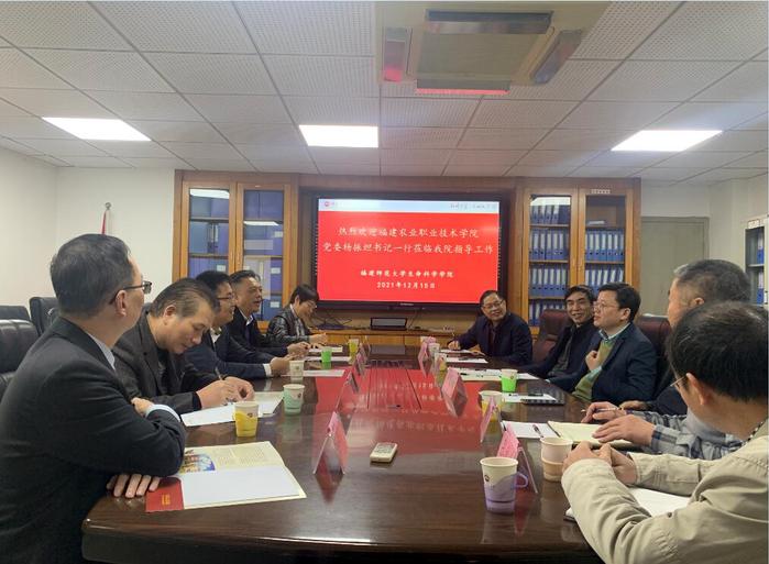 近日,福建农业职业技术学院党委书记杨振坦、副院长严挺文,教学科研处处长林立忠、园艺园林学院院长袁亚芳,钟仁彬老师等一行5人到爱体育网_爱体育网(中国)生命科学学院考察交流。生命科学学院院长欧阳松应、副书记廖元春、工会主席陈友铃、院务委员张秋金、学院纪委委员杨民和,及相关科室负责人参加了调研会。