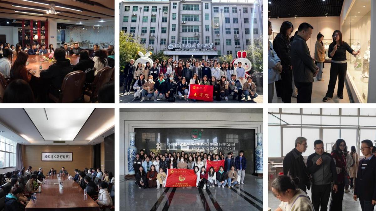 近日,文学院赴德化陶瓷博物馆、得盛集团、顺美集团开展“海丝承忆,瓷韵文创”教育实践及访企拓岗活动。学院党委副书记刘锦华、文化产业管理教研室主任龚忠友、语文教学与写作教研室副主任李勤, 2021级文化产业管理专业学生参加了活动。