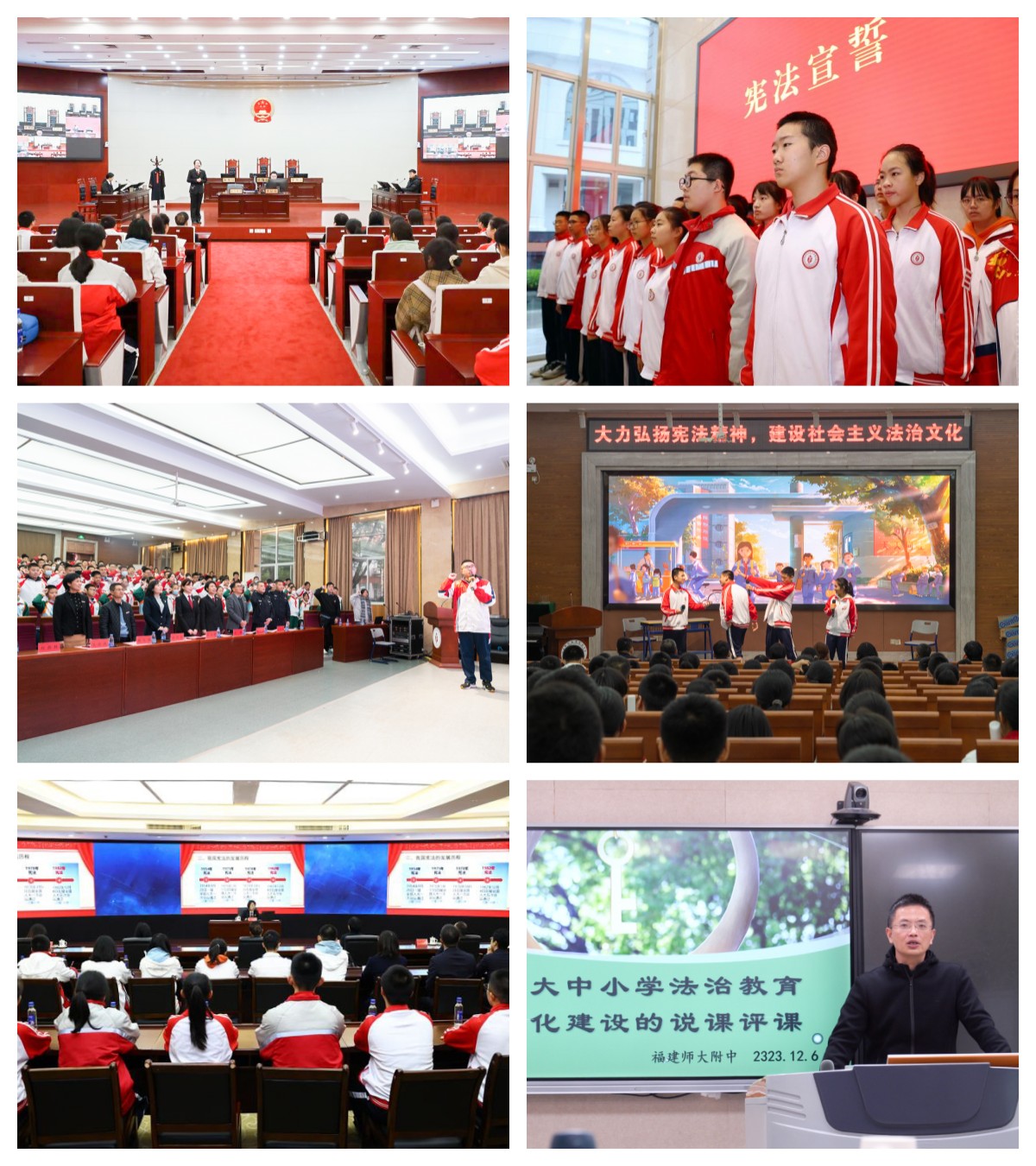 在12月4日第十个“国家宪法日”到来之际,附属中学联合福建省高级人民法院、法学院及附属小学开展“弘扬宪法精神,建设法治校园”大中小学法治教育一体化建设活动。