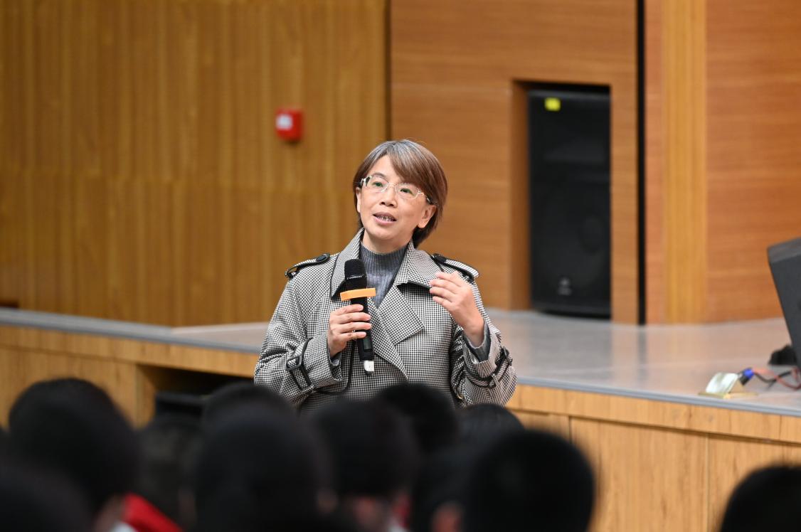 12月11日,附中校刊《求索》编辑部主编、敏行级李贝妮同学以“勿忘民族创伤,心怀大爱前行”为题作国旗下讲话。