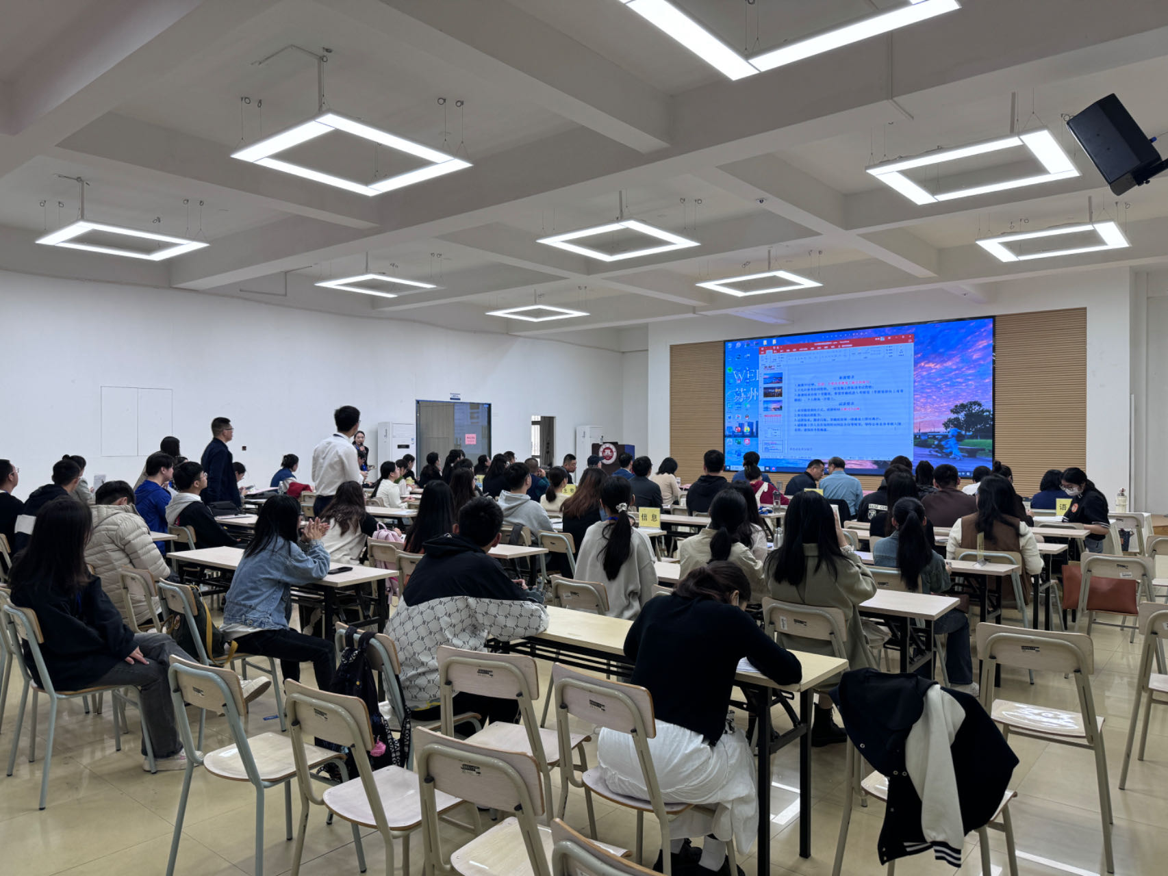 12月11日,苏州工业园区教育局、盐城市大丰区教育局等单位在爱体育网_爱体育网(中国)旗山校区智慧就业大厅开展2024年校园公开招聘会,为毕业生提供74个中小学教师岗位。教育局及18所中学相关工作人员,爱体育网_爱体育网(中国)学生工作部(处)负责人,部分毕业班辅导员以及2024届毕业生参会。
