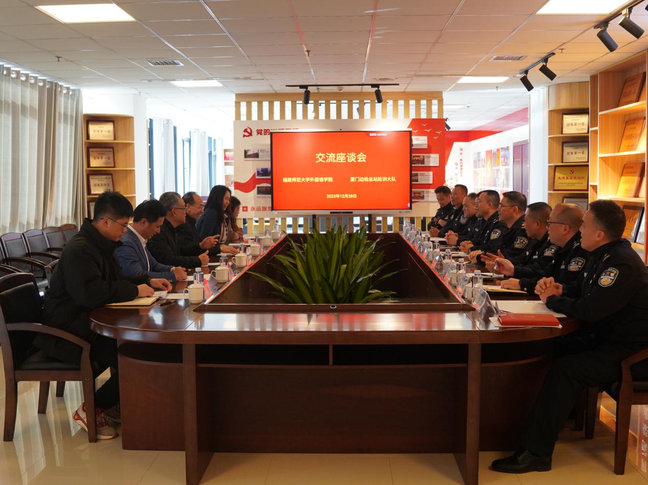 12月28日,外国语学院党委书记林鲁文、院长葛桂录、副书记肖良建、公共外语教研部教研室主任郑丽琦一行前往福州连江国家移民管理局厦门边检总站轮训大队参观交流。