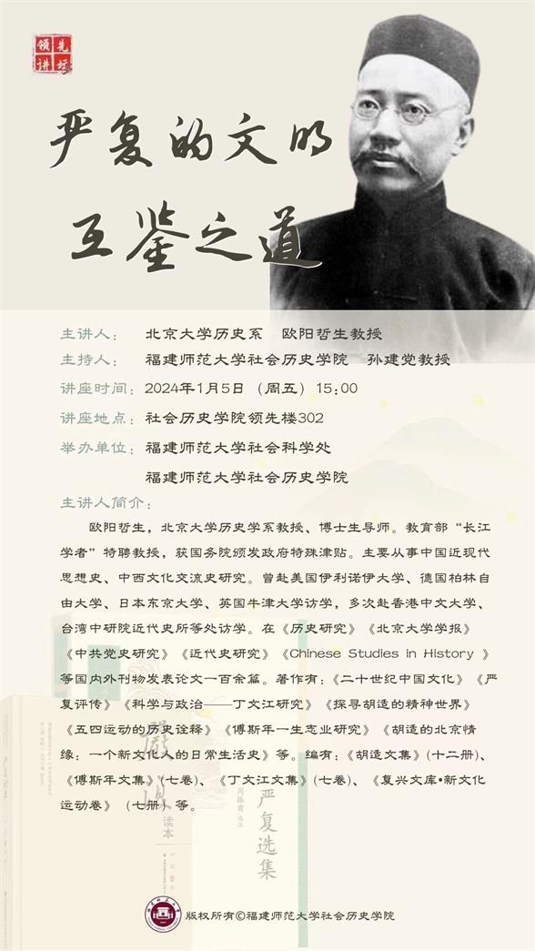 专家简介:欧阳哲生,北京大学历史学系教授、博士生导师。教育部“长江学者”特聘教授,获国务院颁发政府特殊津贴。主要从事中国近现代思想史、中西文化交流史研究。曾赴美国伊利诺伊大学、德国柏林自由大学、日本东京大学、英国牛津大学访学,多次赴香港中文大学、台湾中研院近代史所等处访学。在《历史研究》《北京大学学报》《中共党史研究》《近代史研究》《Chinese Studies in History 》等国内外刊物发表论文一百余篇。著作有:《二十世纪中国文化》《严复评传》《科学与政治——丁文江研究》《探寻胡适的精神世界》《五四运动的历史诠释》《傅斯年一生志业研究》《胡适的北京情缘:一个新文化人的日常生活史》等。编有:《胡适文集》(十二册)、《傅斯年文集》(七卷)、《丁文江文集》(七卷)、《复兴文库•新文化运动卷》(七册)等。
