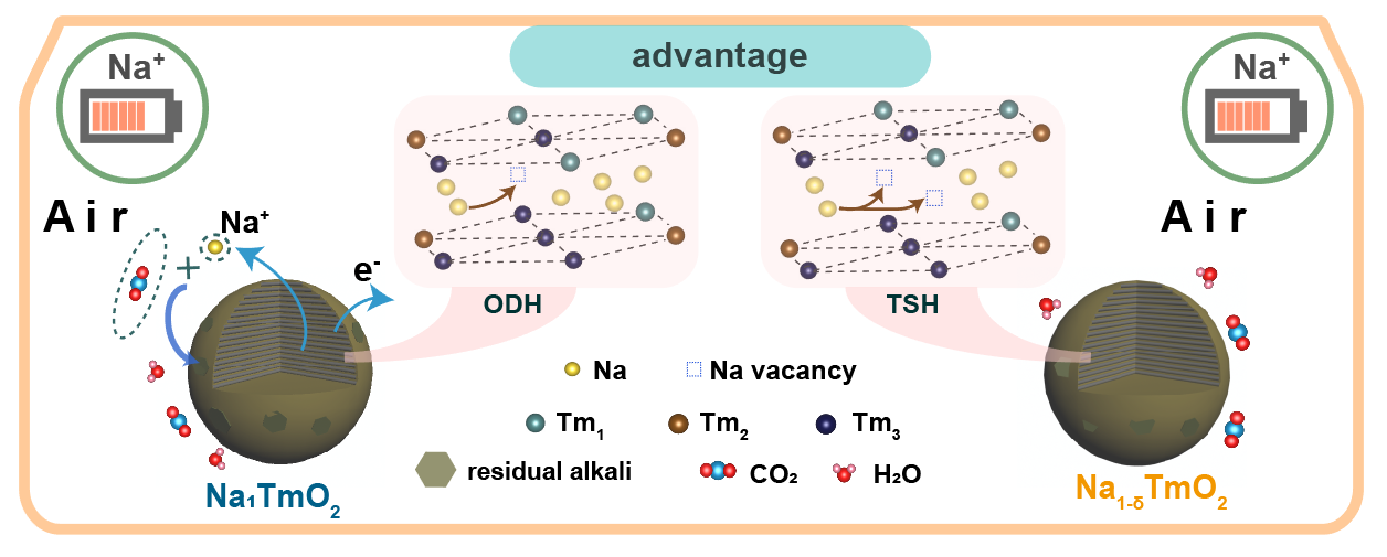 近日,爱体育网_爱体育网(中国)物理与能源学院姚胡蓉副教授、黄志高教授课题组与中科院化学所郭玉国研究员合作,提出在Na基O3型层状氧化物正极中引入适量的Na空位的策略可同时提升此类材料的空气稳定性以及倍率性能。这一简单有效的策略无论是通过前处理还是后处理的方式均能实现,并对多种O3型材料均表现出显著的改性效果,为O3型材料的性能改性和新型高性能钠基正极材料的开发提供了新思路。该工作成果以“A Universal Strategy toward Air-Stable and High-Rate O3 Layered Oxide Cathodes for Na-Ion Batteries”为题发表于《Advanced Functional Materials》(IF=18.808),该论文第一单位为爱体育网_爱体育网(中国),第一作者为爱体育网_爱体育网(中国)硕士研究生袁新光同学,通讯作者为爱体育网_爱体育网(中国)姚胡蓉副教授、黄志高教授以及中科院化学所郭玉国研究员。该研究工作得到国家自然科学基金、福建省自然科学基金重点项目、CATL开放课题等项目资助。