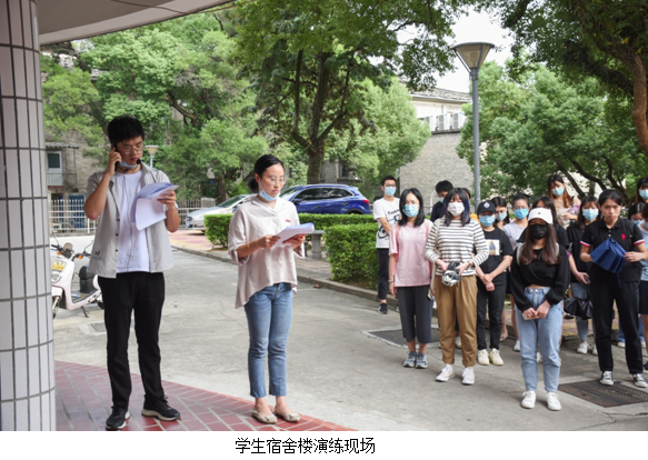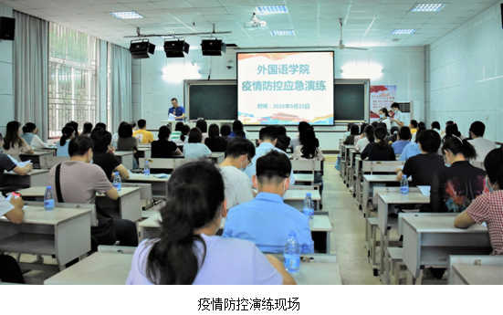9月25日下午,外国语学院在外语楼110教室及南安楼宿舍楼开展了秋季开学疫情防控应急演练。学院领导、教师代表、各年级辅导员、行政后勤部门代表以及学生代表参加了此次观摩和演练。