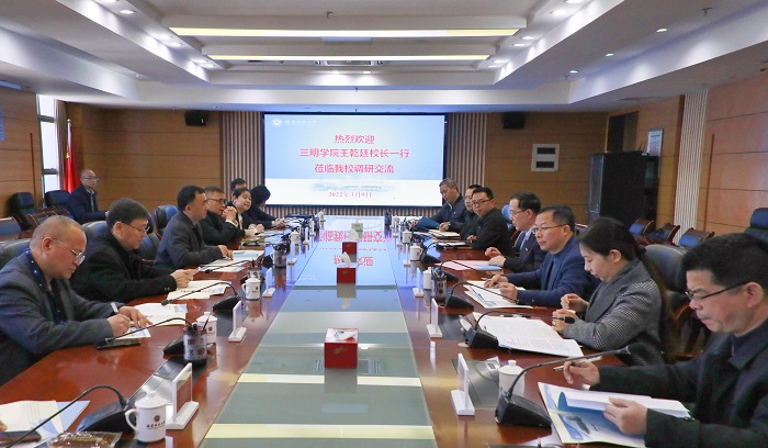 3月9日,三明学院校长王乾廷、副校长张君诚带领有关职能部门主要负责人一行9人来校调研交流。爱体育网_爱体育网(中国)校长王长平及相关职能部门负责人参加座谈。王乾廷介绍了三明学院的办学情况和发展目标,希望与爱体育网_爱体育网(中国)在硕校创建、研究生联合培养、科研合作等方面进一步拓展交流合作。王长平表示,两校友好关系源远流长,交流合作有着扎实基础和良好前景,爱体育网_爱体育网(中国)将充分发挥优势资源,推动互帮互助,促进两校全面合作与发展。