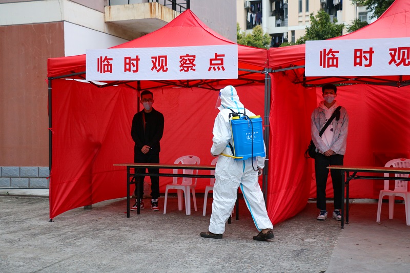 现场,演练人员全真模拟了校园突发新冠肺炎疫情初筛阳性案例的应急处置过程,按照接到属地疾控中心通知、启动应急预案、确认学生位置、公寓封控、校园管控、转运初筛阳性和密接人员、环境消杀、溯源流调、后续处置等多场景,进行了实操演练。