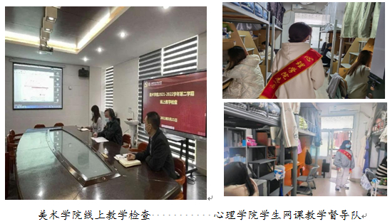 ——自主督查更有力度。环境科学与工程学院每一门线上课程均安排专人督查,实行“一课一查”制度;心理学院组建学生网课教学督导队,由各班干部深入宿舍,检查课前准备、上课状况,督促同学认真对待线上课堂;美术学院、光电信息与工程学院、法学院由院领导带队开展了线上教学检查工作,走访学生宿舍,了解学生线上学习情况。教育学院教育技术专业老师利用“学习通”设置课前签到和课后签退,要求学生课上全程开启摄像头,组织分组汇报、学习成果评价等,让学生参与感更强。