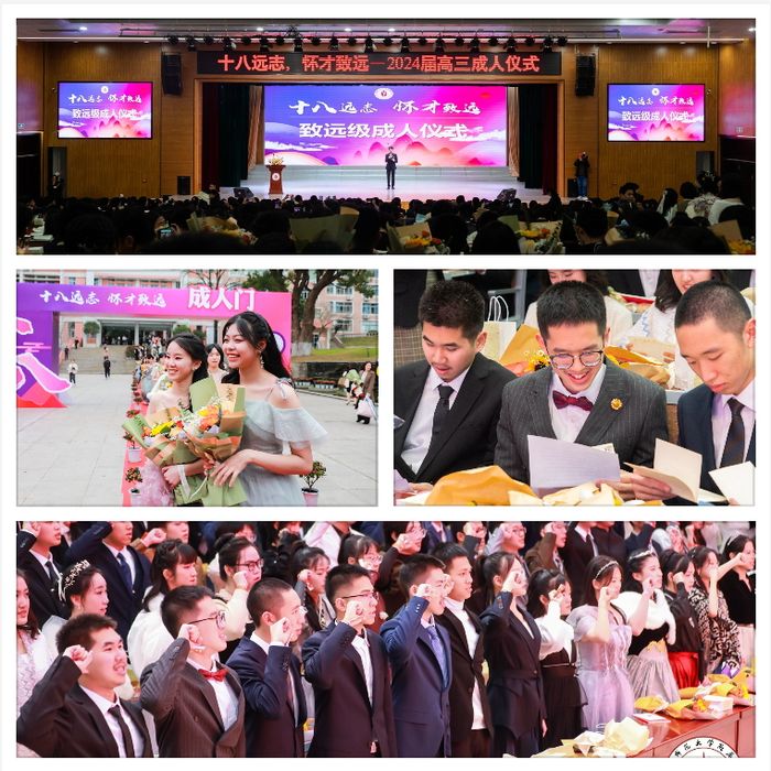 近日,致远级高三年段全体同学盛装打扮,在班主任带领下穿过“成人门”,参加在报告厅举行的成人仪式。校党委书记吴泳清、副校长(主持行政工作)罗银先、副校长蔡宣步、校务委员何燕林,以及老师和家长代表参加了仪式。仪式由邱孜韬同学主持。