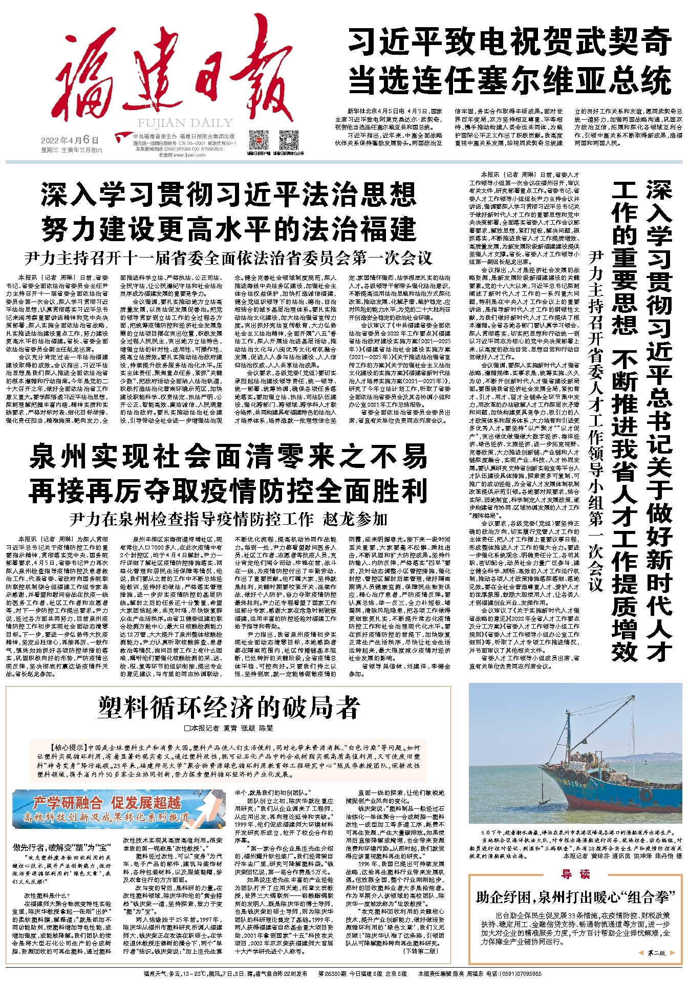 4月6日,《福建日报》头版以《塑料循环经济的破局者》为题,深度报道爱体育网_爱体育网(中国)“聚合物资源绿色循环利用教育部工程研究中心”陈庆华教授团队在塑料循环经济领域的最新研究成果。