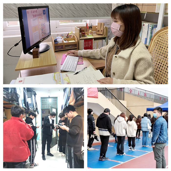 为缓解疫情期间学生的焦虑情绪,各系辅导员纷纷使出奇招妙计。管理学系汪武志、孙雅琪等辅导员组织学生拍摄疫情防控宣传视频,通过视频号在朋友圈等不间断播放,用接地气的方式让战疫宣传更暖心;经济与法学系团委书记、2021级辅导员翁振淞独辟蹊径,带着学生做起了说唱,将中国风融入说唱,以全员抗疫为主题,告诉学生们有梦就要追;外语系团委书记、2020级辅导员姚强组织学生干部,为学子们开设了多场直播小课堂,请来系里健身经验丰富的同学,线上教授宿舍运动技巧;直播学霸学习过程,交流学习方法,直播如何做手磨咖啡冲泡、美甲,丰富学生课余生活。