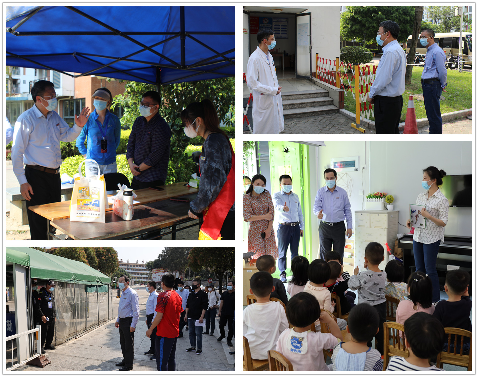 4月11日,校领导潘玉腾、王长平、郑家建、涂荣带领党政办公室、教师工作部、学生工作部、保卫处、教务处、实验室与设备管理处、后勤管理处、基建处、校医院等单位负责人,组成两个检查组,分别深入旗山、仓山校区校门、教学楼、实验室、幼儿园、医院门诊部、外卖督导点、师生健康观察点、智慧体育公园、在建工地、食堂、商业街等场所,对学校恢复线下教学和校园疫情防控等工作进行全面细致的检查。
