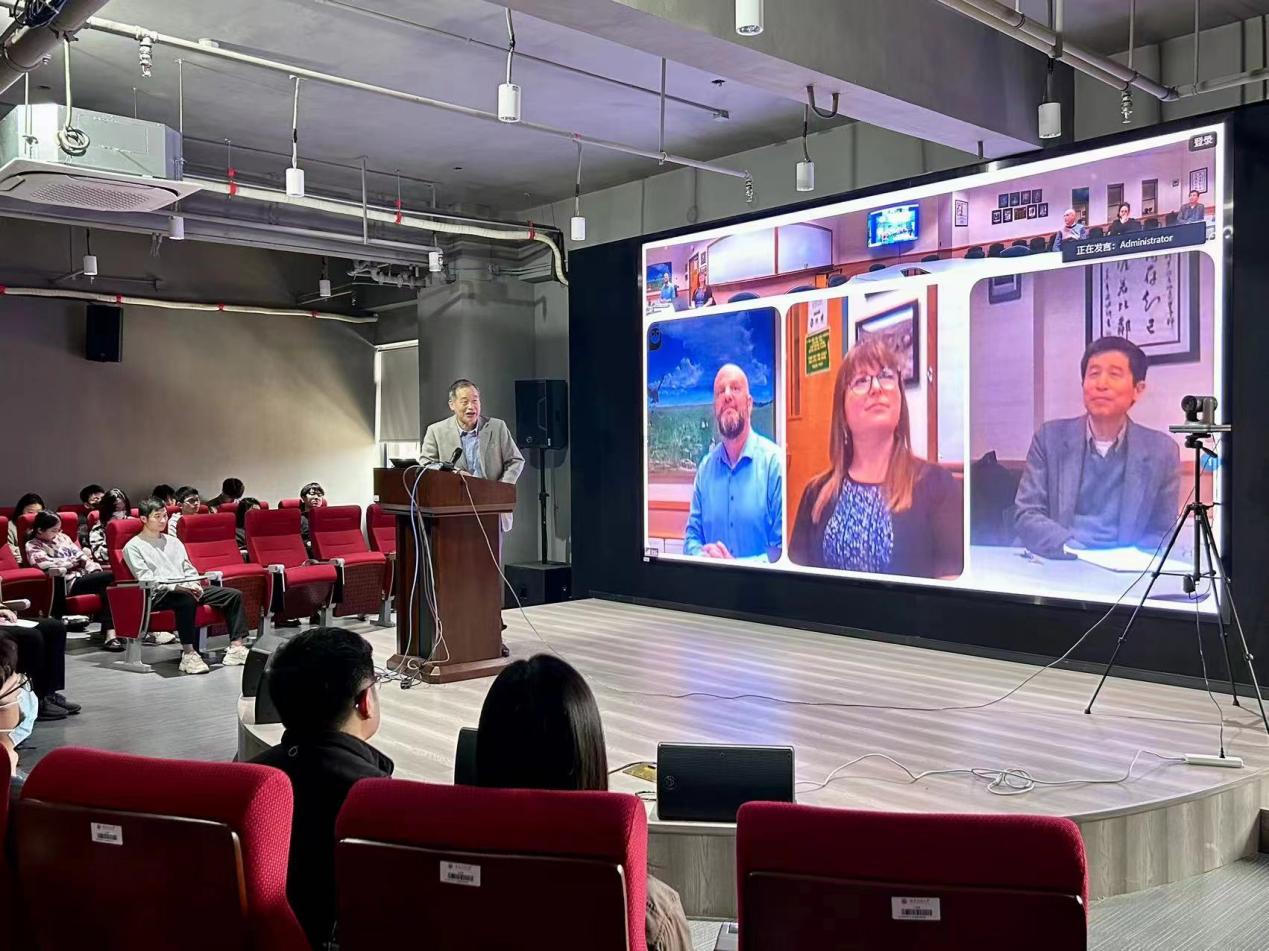 宣讲会上,陈镜明院士首先介绍了科罗拉多州立大学的基本情况及其在碳管理、气候变化、可持续发展等方面的学科优势。随后,科罗拉多州立大学相关负责人对学院师生的积极参与表示欢迎,就学校碳管理科学、水资源科学、可持续粮食系统、气候适应与风险等学科的专业硕士项目作了介绍,表示期望与学院在学科建设、人才培养等方面开展交流合作。在现场交流环节,科罗拉多州立大学教师代表对学院师生提出的问题进行了详细解答。