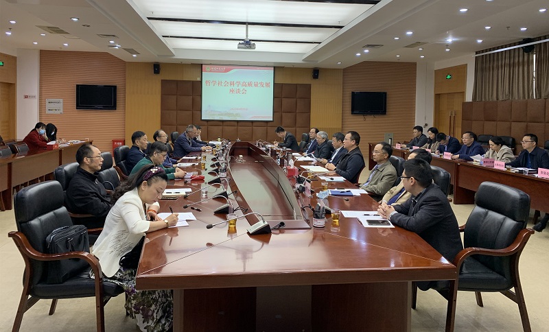 会议围绕学校哲学社会科学育人、学科实力提升、科研管理服务等方面内容展开。校领导认真听取了与会代表们对学校哲学社会科学高质量发展的意见和建议,并与大家进行了广泛、深入的交流,重点对学校人文社科跨学科交叉融合、人才队伍建设、平台和团队建设等情况进行把脉、诊断和剖析。