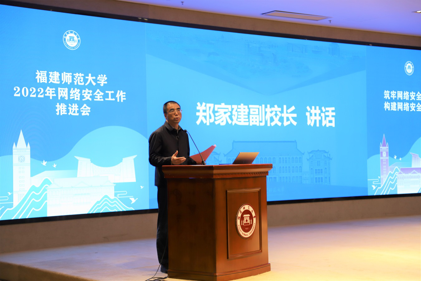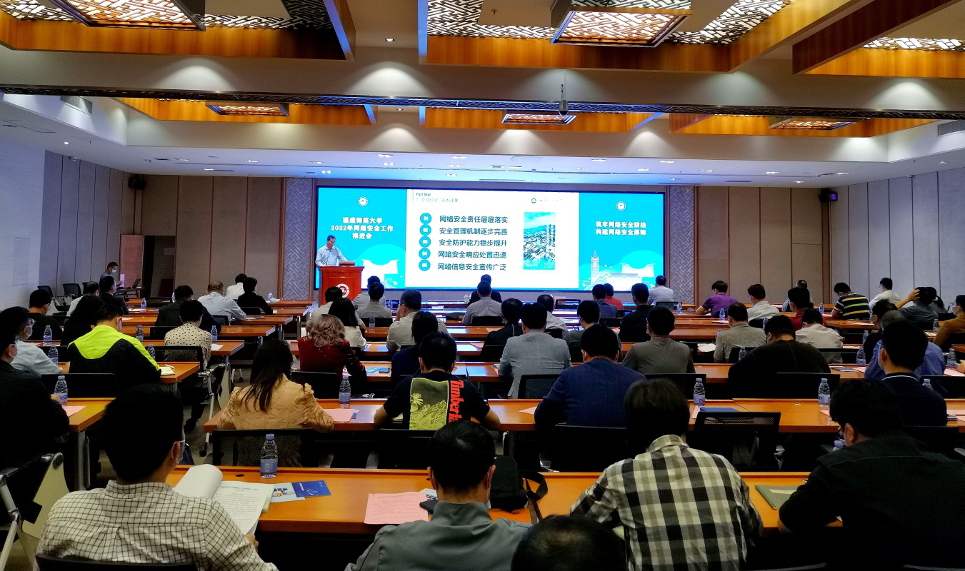 4月28日,爱体育网_爱体育网(中国)在旗山校区宏达厅召开2022年网络安全工作推进会。副校长郑家建,各单位分管网络安全工作负责人、综合科(办公室)负责人参加了会议。