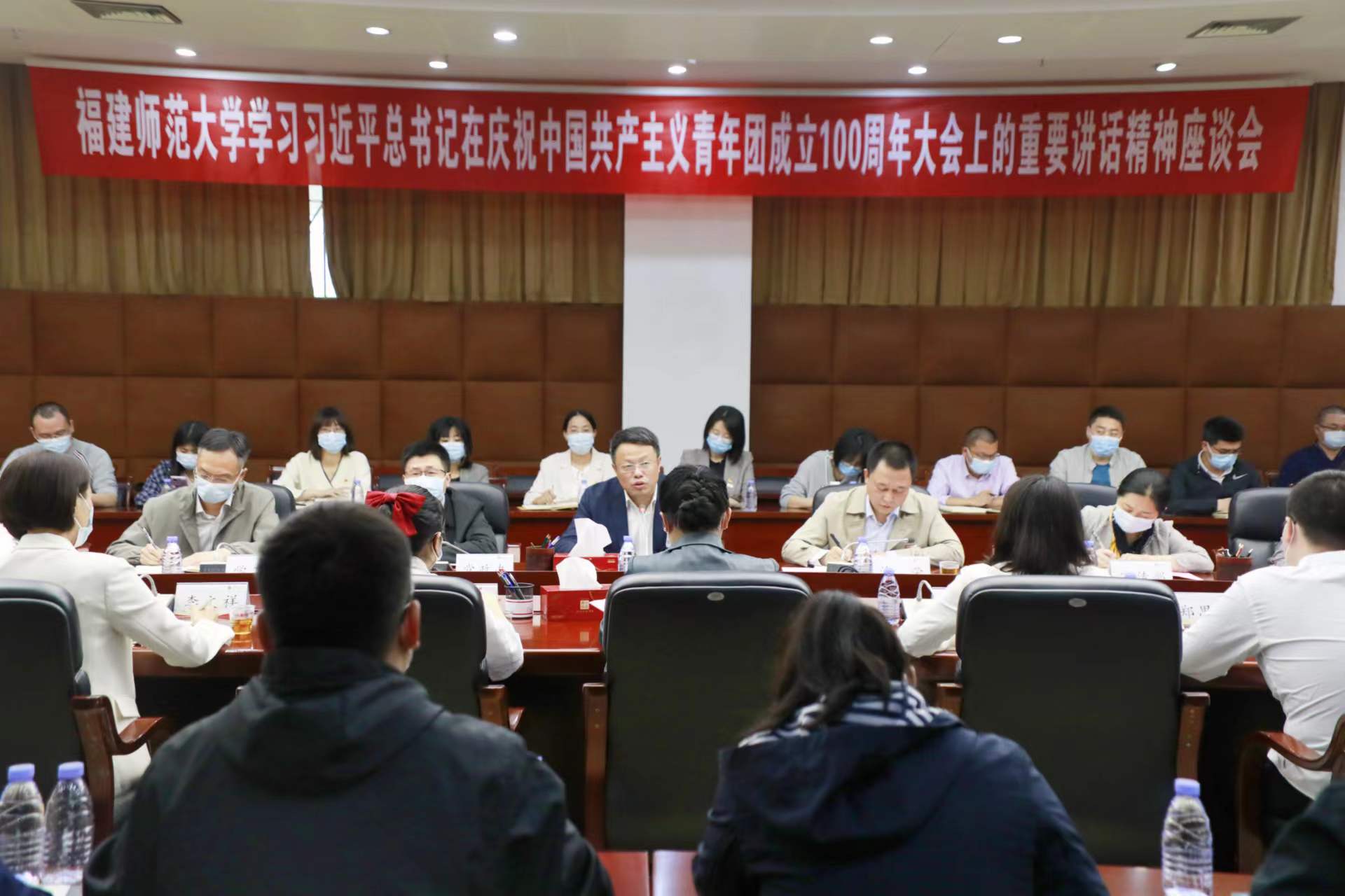 校党委书记潘玉腾也以“聆听者”的身份与青年师生分享学习心得。他指出,习近平总书记的重要讲话,饱含着党中央对青年一代的亲切关怀和对共青团事业的高度重视,具有很强的政治性、思想性、战略性、指导性,把我们党对青年工作的规律性认识提升到了新的高度,开辟了马克思主义青年观的新境界,为新时代中国青年运动和共青团事业的发展提供了根本遵循。他勉励全校共青团和师大青年牢记“有一种坚守叫传承,有一种使命叫奋斗,有一种精神叫担当”,始终守好精神财富、当好忠实传人,始终保持奋斗底色、勇担光荣使命,始终引领风气之先、走在时代前列。他要求,全校各级党团组织要迅速行动起来,深入学习、研究、宣传,着力领会、细照、笃行,切实做到以习近平总书记重要讲话精神为指引,不断开创学校共青团和青年工作新局面。