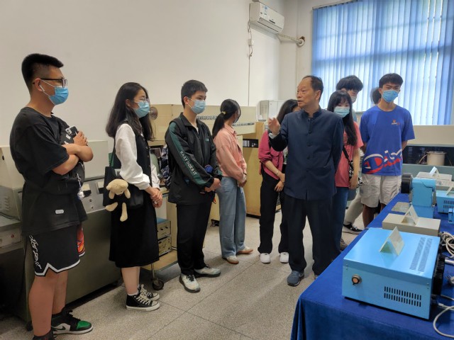 活动中,陈荣教授还带领同学们参观了学院光子技术和电子信息实验室,学习使用光谱仪、分光光度计等精密的光学科研仪器,了解未来光电领域前沿科研方向。
